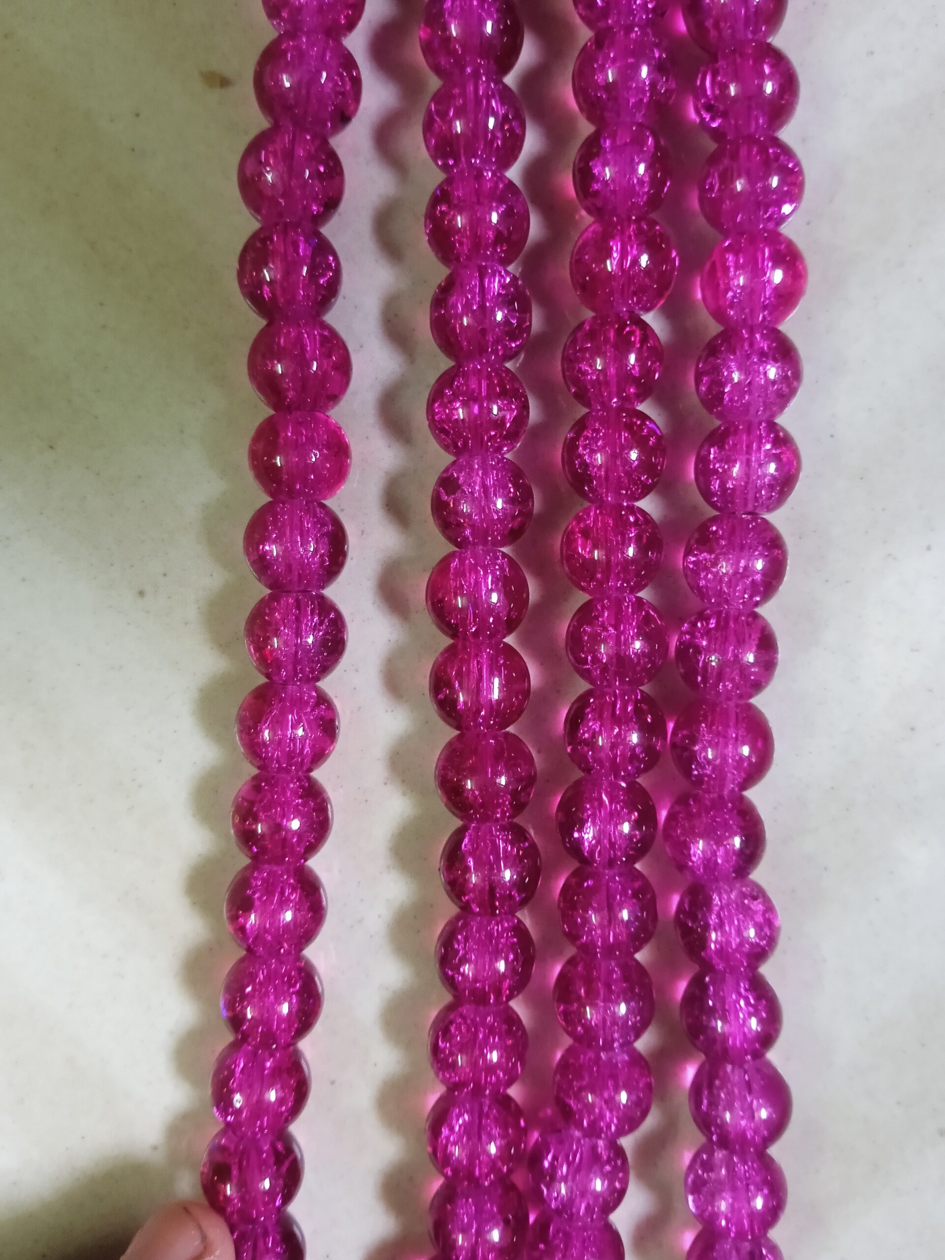 Dark Pink crackle beads _ Single line (90 to 110 beads)